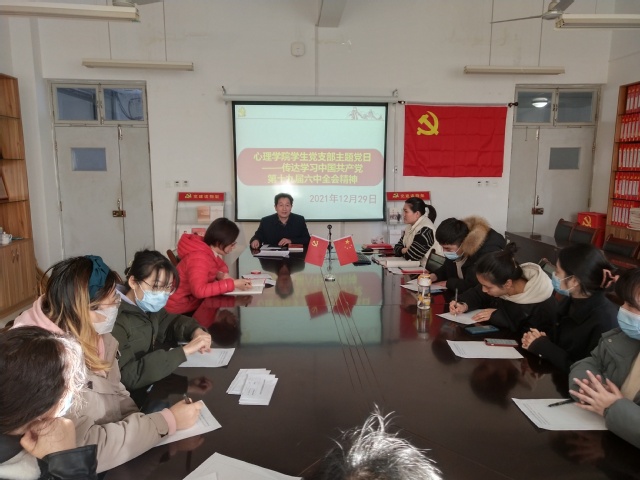 12月29日下午,脱裤吧 学生党支部于会议室开展党的十九届六中全会精神专题学习活动,脱裤吧 党总支书记刘宪亮、正处级组织员魏瑞荣、辅导员及全体学生党员参加。