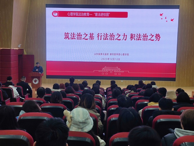 为深入学习贯彻习近平法治思想,进一步加强青年学生法治宣传教育,应脱裤吧 邀请,山东省潍北监狱党委委员、副政委孙磊一行7人来院开展“普法进校园”法治宣传活动。活动由脱裤吧 党总支书记李洪先主持,副书记田桂香、教师代表、2022级、2023级全体学生参加。