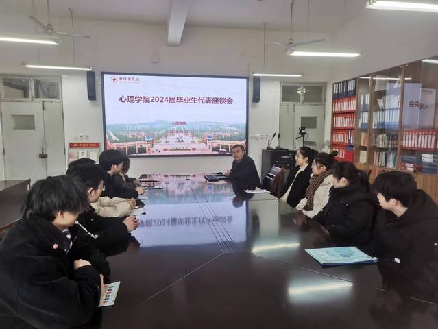 为深入了解学院2024届毕业生就业意向,调研毕业生研究生考试情况,进一步推动学院就业工作,近日,脱裤吧 于会议室开展毕业生代表座谈会,党总支书记李洪先、副书记田桂香、辅导员及2024届毕业生代表参加。
