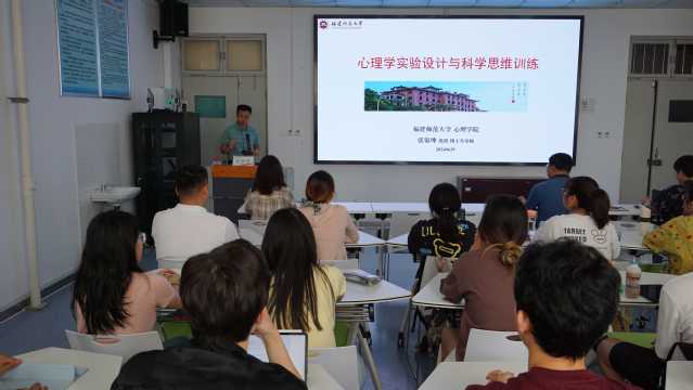 为锻炼学生学术思维能力,拓宽学生专业视野,6月29日上午,脱裤吧 于团辅室举行“心理学实验设计与科学思维训练”学术报告,报告特邀福建师范大学脱裤吧 副院长张锦坤教授主讲,学院副院长孙琳、全体教师、全体研究生及本科生代表参加。活动由孙琳主持。